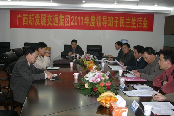 12月21日,廣西新發(fā)展交通集團有限公司黨委在南寧召開了以“堅持以人為本企業(yè)文化理念,發(fā)揚密切聯(lián)系職工群眾作風”為主題的2011年黨政領(lǐng)導班子民主生活會。自治區(qū)交通運輸廳總工程師王劼耘、廳直屬機關(guān)黨委專職副書記羅華芝到會指導。集團公司朱堅和、李定倫、張友坐、劉明洪、鄧遠志、覃炳賢等六位領(lǐng)導班子成員出席會議,集團公司機關(guān)黨支部書記列席會議。