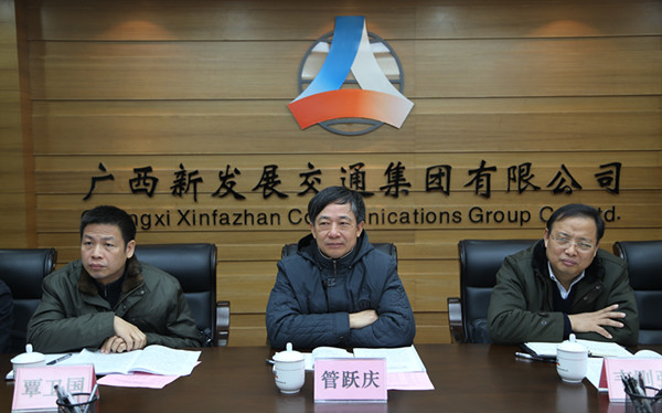 2月13日上午9時,自治區(qū)國資委主任、黨委書記管躍慶一行到廣西新發(fā)展交通集團開展調(diào)研座談,了解企業(yè)生產(chǎn)經(jīng)營情況及需要解決的困難和問題,并對集團公司生產(chǎn)經(jīng)營及管理工作提出了指導(dǎo)性的意見和建議。