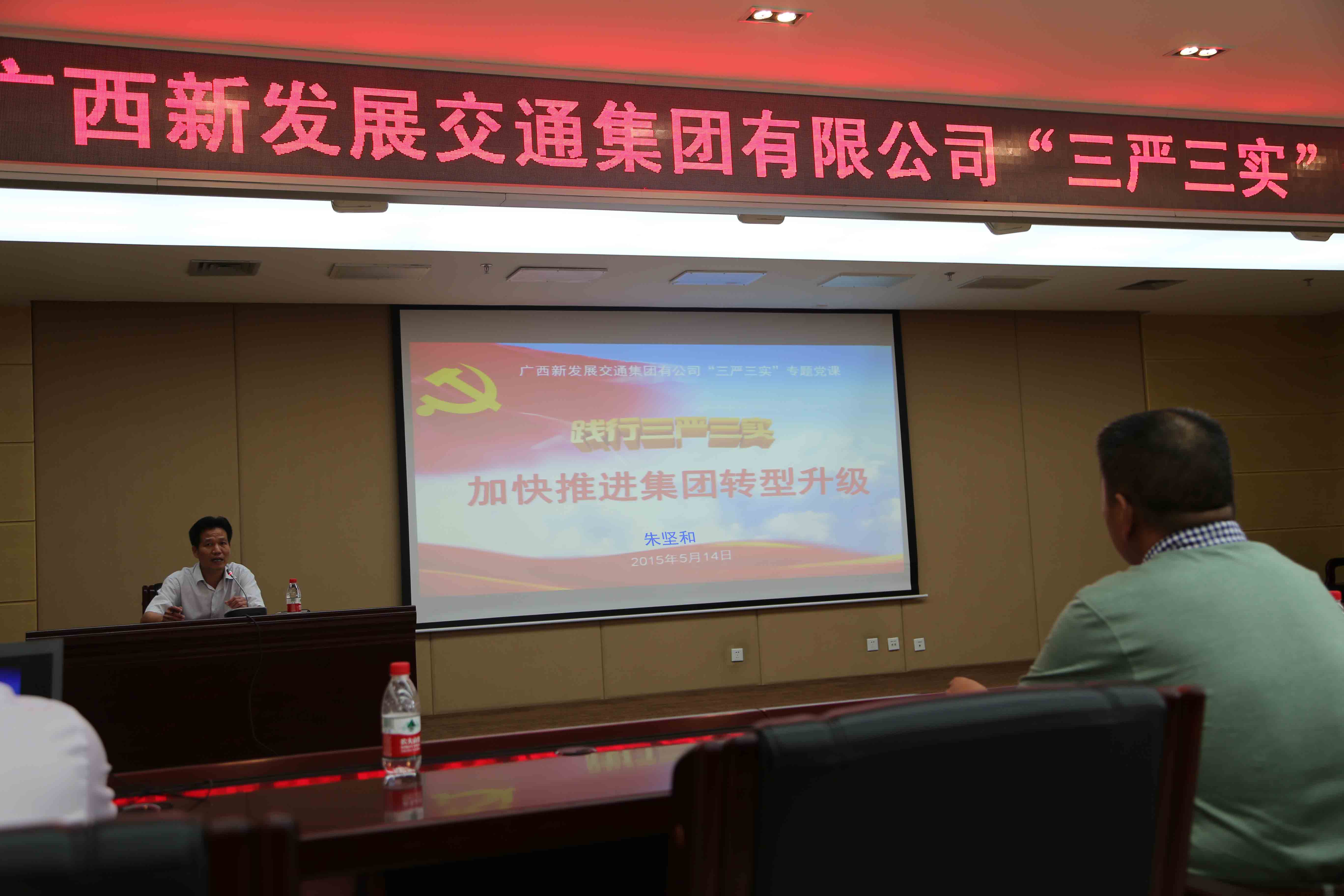 朱堅和書記在課上結(jié)合自身學(xué)習(xí)貫徹習(xí)近平總書記系列重要講話精神的認識和體會,同與會人員就深刻認識開展“三嚴三實”專題教育的重大意義進行交流,他指出,開展“三嚴三實”專題教育是落實從嚴治黨的重要舉措,要通過這一務(wù)實有效的載體,會進一步嚴肅黨內(nèi)政治生活、嚴明黨的政治紀律和政治規(guī)矩,進一步強化全面從嚴治黨的思想自覺、政治自覺和行動自覺;開展“三嚴三實”專題教育是深化作風(fēng)建設(shè)的具體體現(xiàn),我們要把“三嚴三實”作為作風(fēng)建設(shè)的一把尺子、立身做人的一面鏡子,經(jīng)常用“三嚴三實”量一量自己、照一照自己,讓“三嚴三實”內(nèi)化于心、外化于行、固化于制,使作風(fēng)建設(shè)要求真正落地生根;開展“三嚴三實”專題教育是集團公司面臨轉(zhuǎn)型升級關(guān)鍵時期、趕超跨越發(fā)展歷史重任,加強黨員干部教育的必然要求,是發(fā)展所需、形勢所需;開展“三嚴三實”專題教育也是解決“不嚴不實”問題的現(xiàn)實需要,我們要堅持從嚴要求,強化問題導(dǎo)向,對照“不嚴不實”表現(xiàn),結(jié)合集團干部隊伍實際,著力查擺為官不正、為官不廉、為官不實、為官不為“四不”問題,深挖根源,分析危害,找準癥結(jié),切實整改。