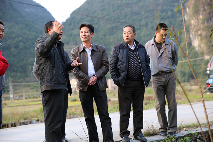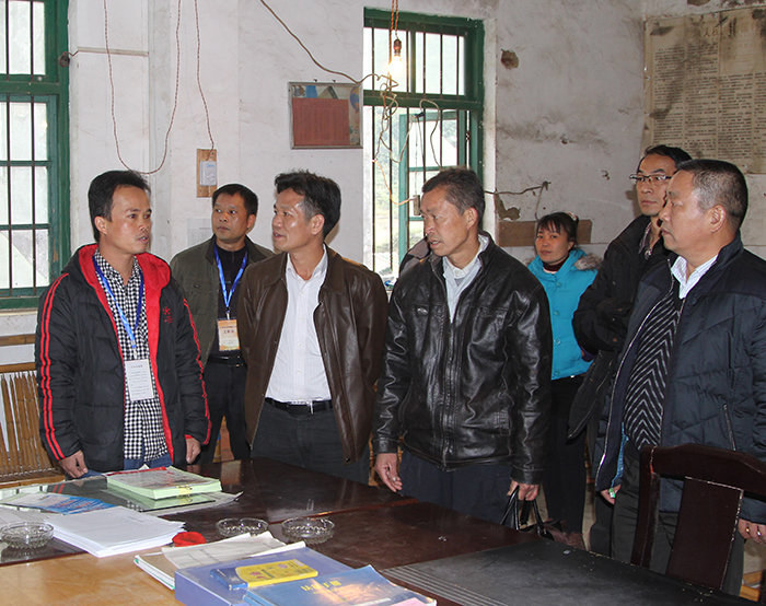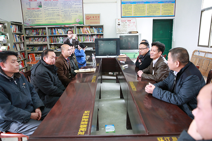 集團(tuán)公司朱堅(jiān)和董事長(zhǎng)(左三)、張友坐副書記(右一)聽(tīng)取駐村”第一書記“梁義寬匯報(bào)工作。   在相堯村、豹山村、才帛村,朱堅(jiān)和董事長(zhǎng)分別與當(dāng)?shù)劓?zhèn)、村干部以及覃獻(xiàn)康、梁義寬、蔣博三位派駐農(nóng)村“第一書記”和扶貧工作隊(duì)隊(duì)員進(jìn)行親切交談,詳細(xì)詢問(wèn)“第一書記”工作、生活情況,并聽(tīng)取了“第一書記”關(guān)于幫扶村的黨建及村集體經(jīng)濟(jì)發(fā)展情況匯報(bào)。得知目前各駐村書記及扶貧工作隊(duì)員已經(jīng)完成精準(zhǔn)扶貧入戶摸底調(diào)查時(shí),朱堅(jiān)和董事長(zhǎng)對(duì)“第一書記”到村以來(lái),深入調(diào)查走訪,積極幫助村里理思路、定規(guī)劃、辦實(shí)事,表示充分肯定。