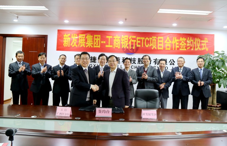 2016年3月2日、3月4日,集團(tuán)公司分別與中國工商銀行廣西區(qū)分行、廣西農(nóng)村信用社簽訂ETC項(xiàng)目合作協(xié)議,標(biāo)志著新發(fā)展集團(tuán)多措并舉全面全力推廣拓展ETC項(xiàng)目又邁出了堅(jiān)實(shí)的步伐。