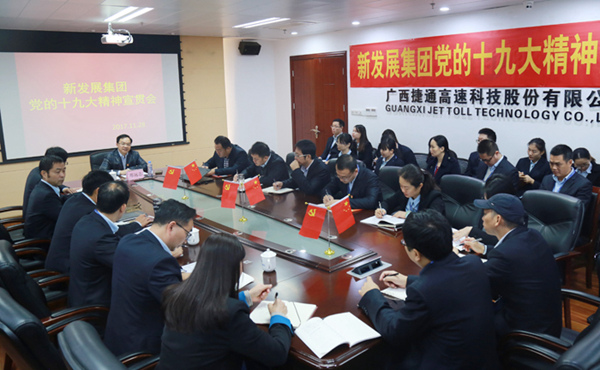 11月28日上午,集團(tuán)公司總會(huì)計(jì)師鄧遠(yuǎn)志來(lái)到捷通公司宣講黨的十九大精神,并開(kāi)展工作調(diào)研。捷通公司黨總支班子及總部人員和南寧市自營(yíng)網(wǎng)點(diǎn)負(fù)責(zé)人近70人參加了學(xué)習(xí)。