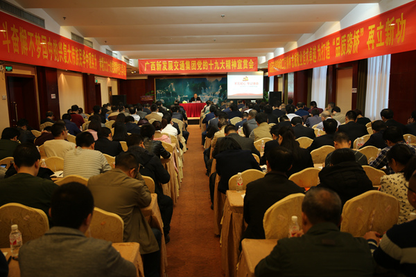 會上,唐咸秋緊扣黨的十九大報告原文,對黨的十九大精神進行系統(tǒng)深入的講解,對黨的十九大主題、習近平新時代中國特色社會主義思想、過去5年歷史性成就及變革、中國特色社會主義進入新時代、社會主要矛盾的變化等內(nèi)容,圍繞報告的重要思想、重要觀點、重大判斷、重大舉措進行全面闡述,并結(jié)合新發(fā)展交通集團的實際,提出了貫徹落實十九大精神的具體舉措。