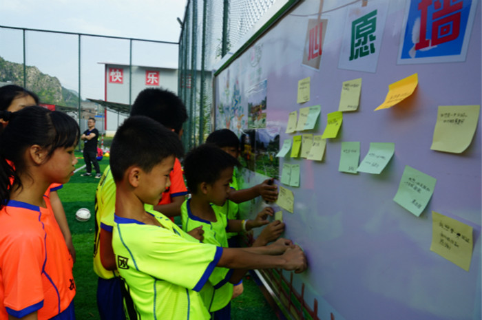 在活動現(xiàn)場,志愿者們還為孩子們設置了“心愿墻”,孩子們在老師的指引下寫出了埋藏在心里已久的心愿—“我想要一件皇馬隊球衣”、“我想要一本日記本”……一個個質(zhì)樸的心愿都將在志愿者的幫助下得以實現(xiàn)。