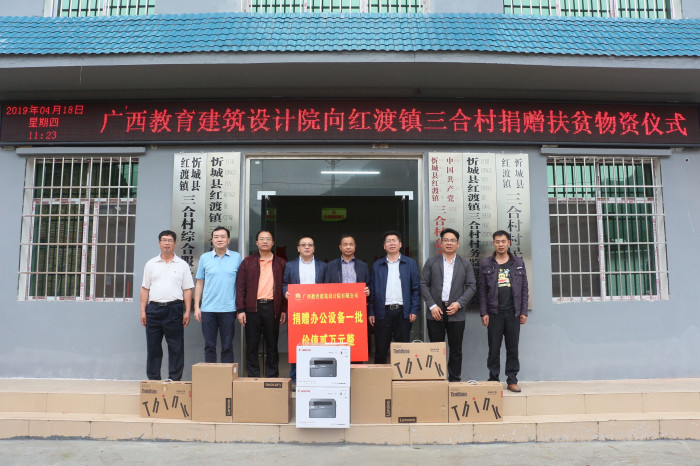 4月18日,廣西教育建筑設(shè)計(jì)院有限公司黨支部書記、執(zhí)行董事梁志率隊(duì)到忻城縣紅渡鎮(zhèn)三合村開展扶貧慰問,并向三合村委捐贈了一批價(jià)值2萬元的辦公設(shè)備,用于駐村扶貧工作隊(duì)員開展扶貧工作。教育設(shè)計(jì)院副院長鄧江,忻城縣委常委、縣人民政府副縣長王華,縣政協(xié)副主席、紅渡鎮(zhèn)黨委書記羅健康同時(shí)參加捐贈儀式。
