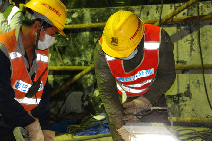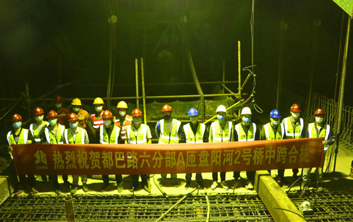 盤陽河2號橋中跨合龍結(jié)構(gòu)受力復雜,對施工工藝及質(zhì)量要求較高,且作業(yè)面積狹小,在夜間低溫條件下才能進行合龍澆筑,施工難度較大。都巴高速指揮部與項目管理人員精心策劃、嚴密組織施工,成立了工作領(lǐng)導小組和突擊隊,堅持一手抓疫情防控、一手抓復工復產(chǎn),安全、優(yōu)質(zhì)、高效完成建設(shè)任務(wù)。